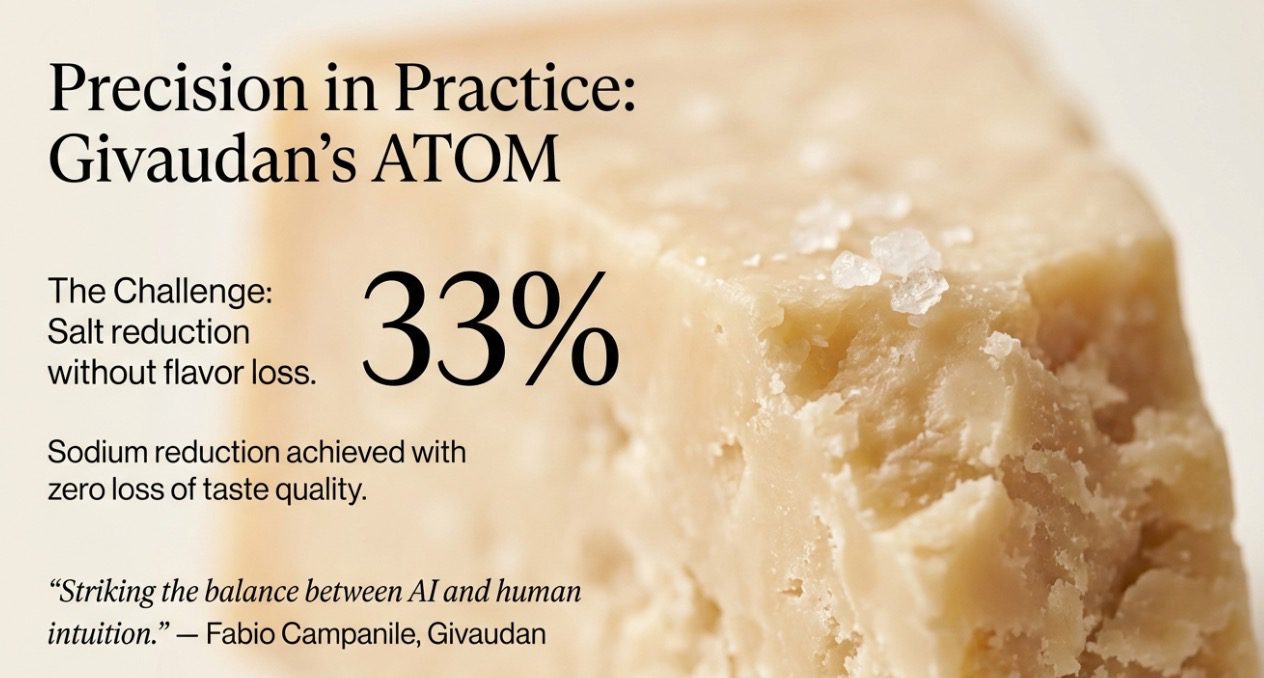 In a cheese snack salt reduction project, ATOM rapidly identified an ideal recipe achieving 33% sodium reduction while maintaining original flavor characteristics. Blind taste testing confirmed the reduced-salt formulation scored equivalently to the full-salt version, validating the effectiveness of AI-assisted recipe modification. This process has successfully extended to sugar reduction, vanillin replacement, and plant-based meat alternative projects. Fabio Campanile, Givaudan’s Head of Global Science & Technology for Taste & Wellbeing, emphasizes that ATOM strikes the right balance between AI and human intuition, complementing the work of expert flavorists and developers while helping customers exceed consumer expectations.