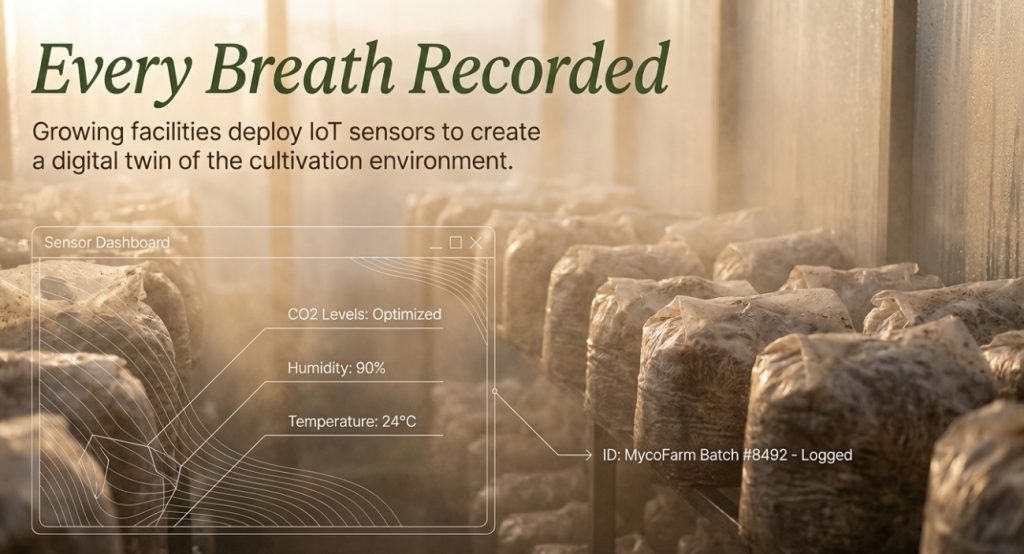 Growing facilities deploy IoT sensors to record temperature, humidity, and CO2 levels during cultivation. MycoFarm assigns unique identifiers to each batch, logging growth conditions, harvest dates, and transport details. Consumers can scan QR codes to access complete cultivation information.