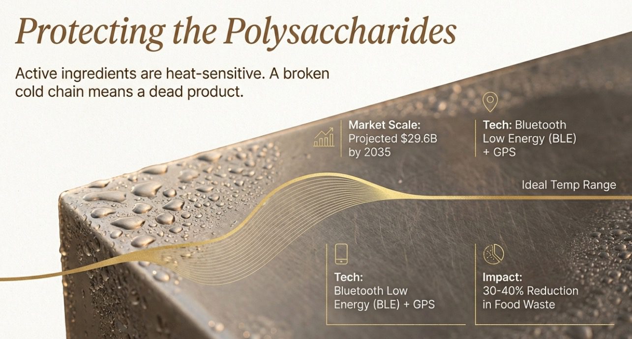 Active ingredients in functional mushroom extracts—polysaccharides and triterpenes—are sensitive to temperature and humidity. IoT cold chain monitoring systems use wireless sensors, GPS trackers, and cloud platforms to provide real-time or recorded temperature data.